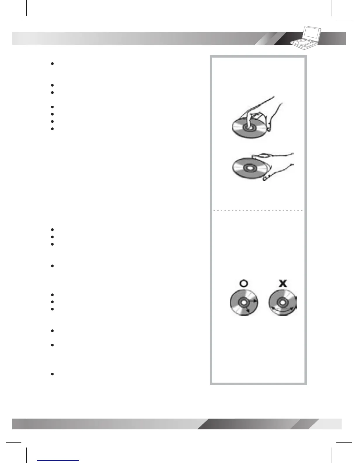 Hold the disc by the edges so the surface will not be soiled with nger-