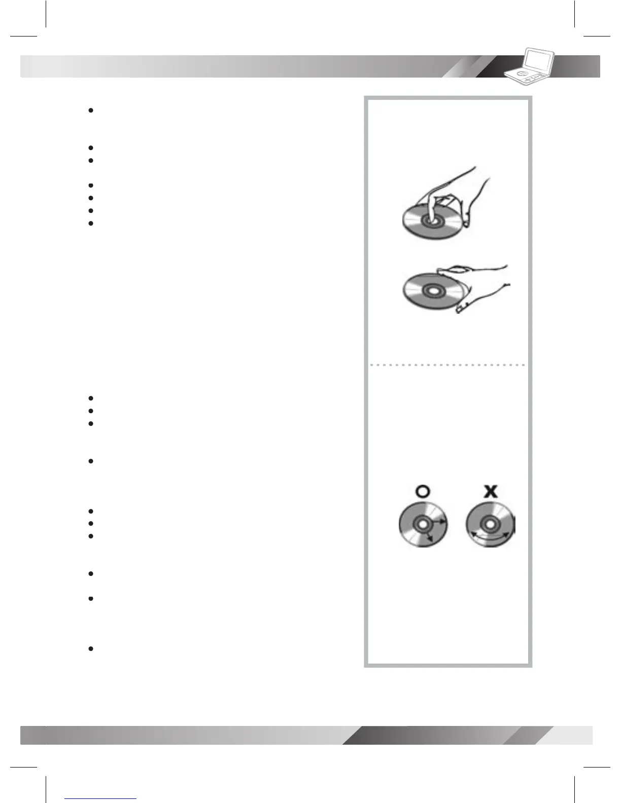 Hold the disc by the edges so the surface will not be soiled with nger-