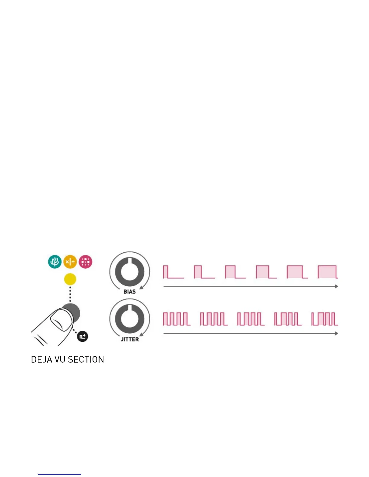 RATE knob and CV input are re-purposed as a division/multiplication control, and the jitter setting is