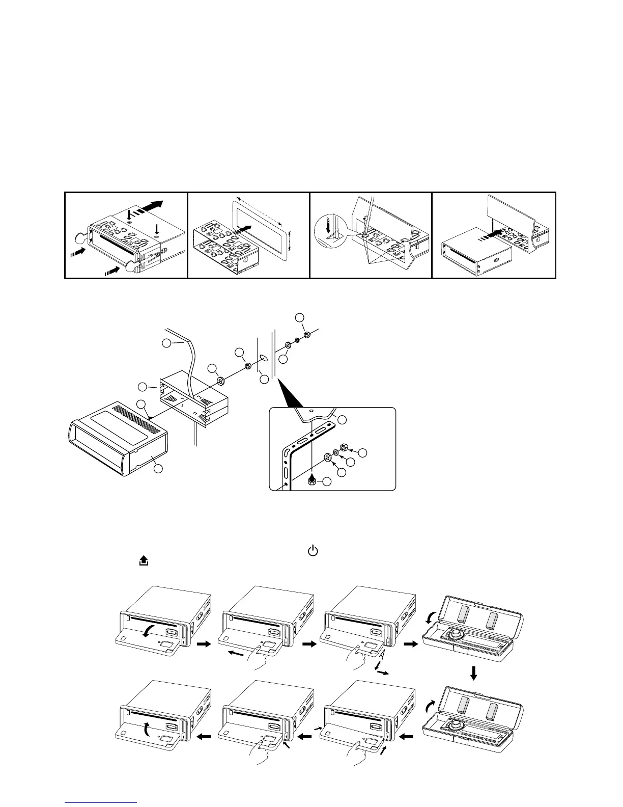 • Be sure to remove the front panel before installing the unit.