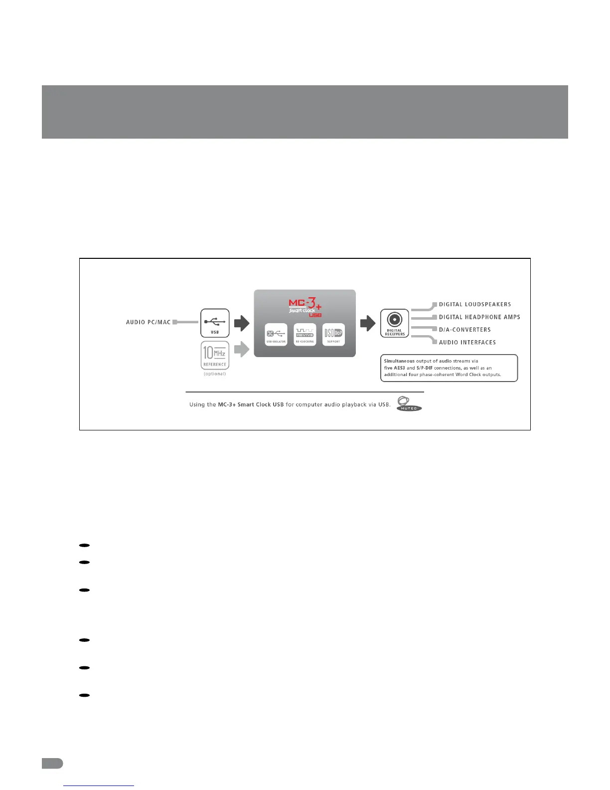 Thank you very much for buying the MC-3+ Smart Clock USB, an Audio Re-Clocker, USB Interface and Synchronizable Digital