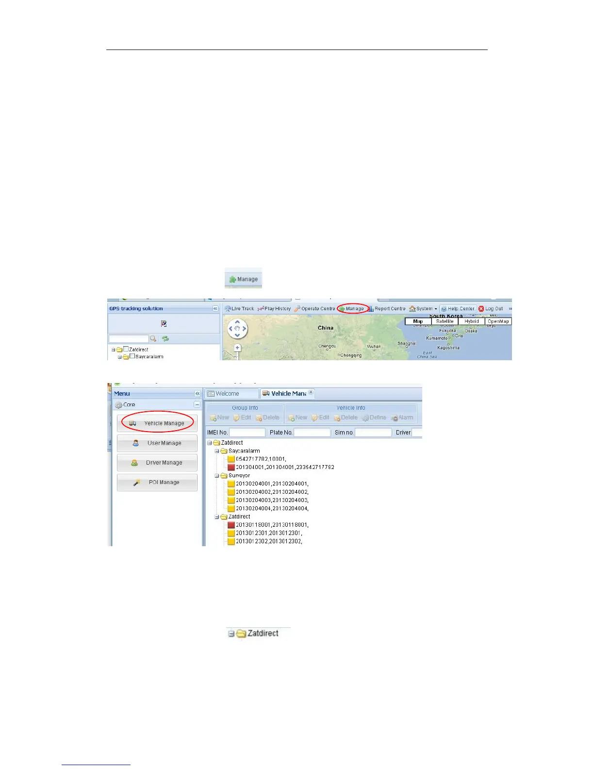 Click picture 1“ manage” and then click the picture 2, “Vehicle Manage.”