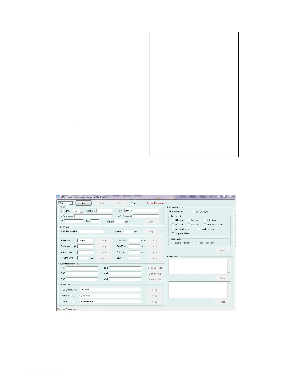 Open GPS tracker parameter editor (2010) V2.65 (following picture)