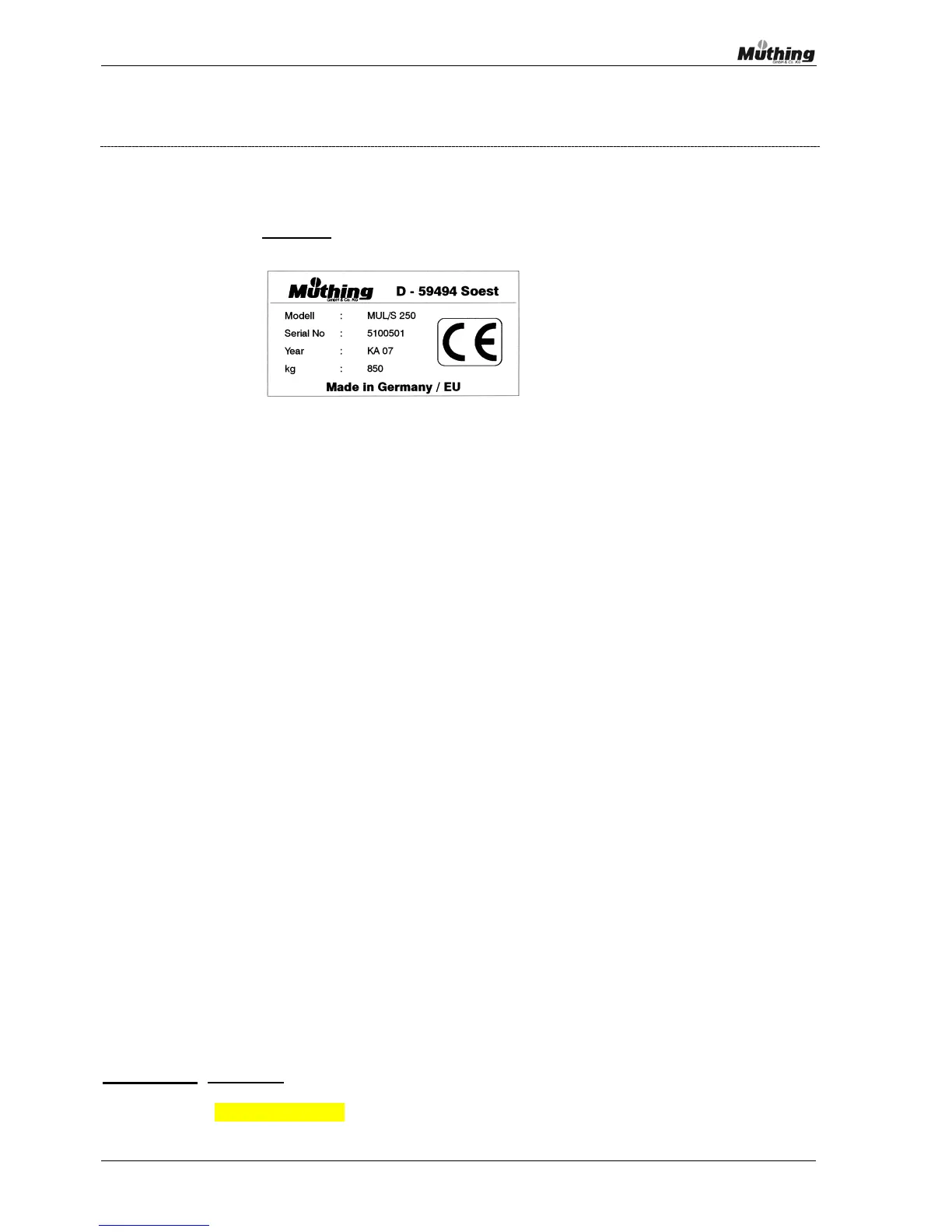 Please copy the data from your Müthing mulcher and the gearbox, which you will find on the type