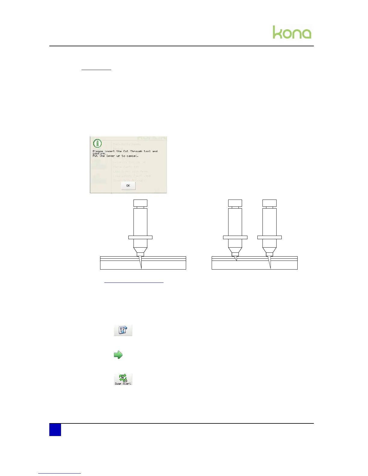 Refer to the Application Guide of the Kona to know how to initiate a cut through routine