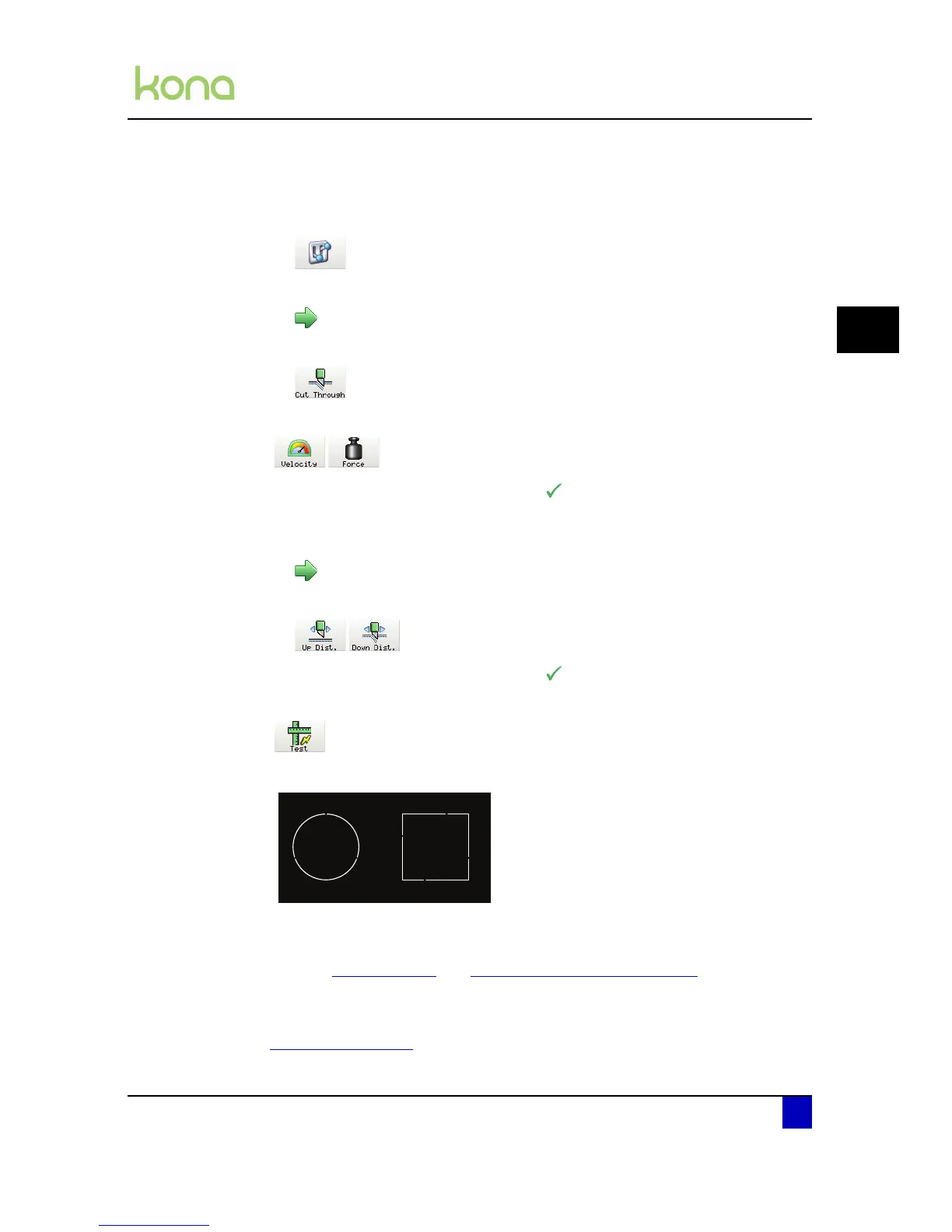 Step 6: Press the test key to verify the quality of the through cutting settings.