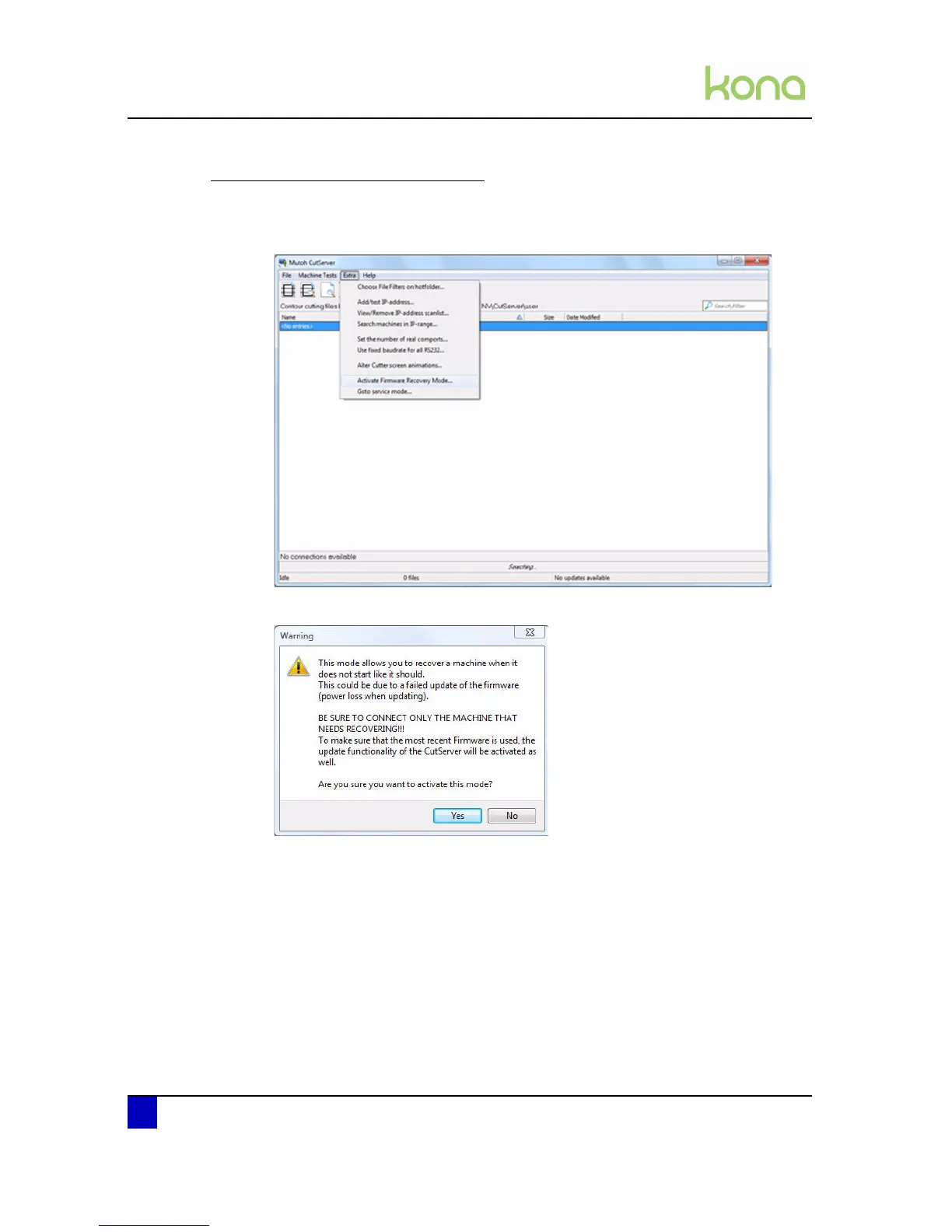 Step 2: In the CutServer, click the Extra tab and select Activate Firmware Recovery Mode.