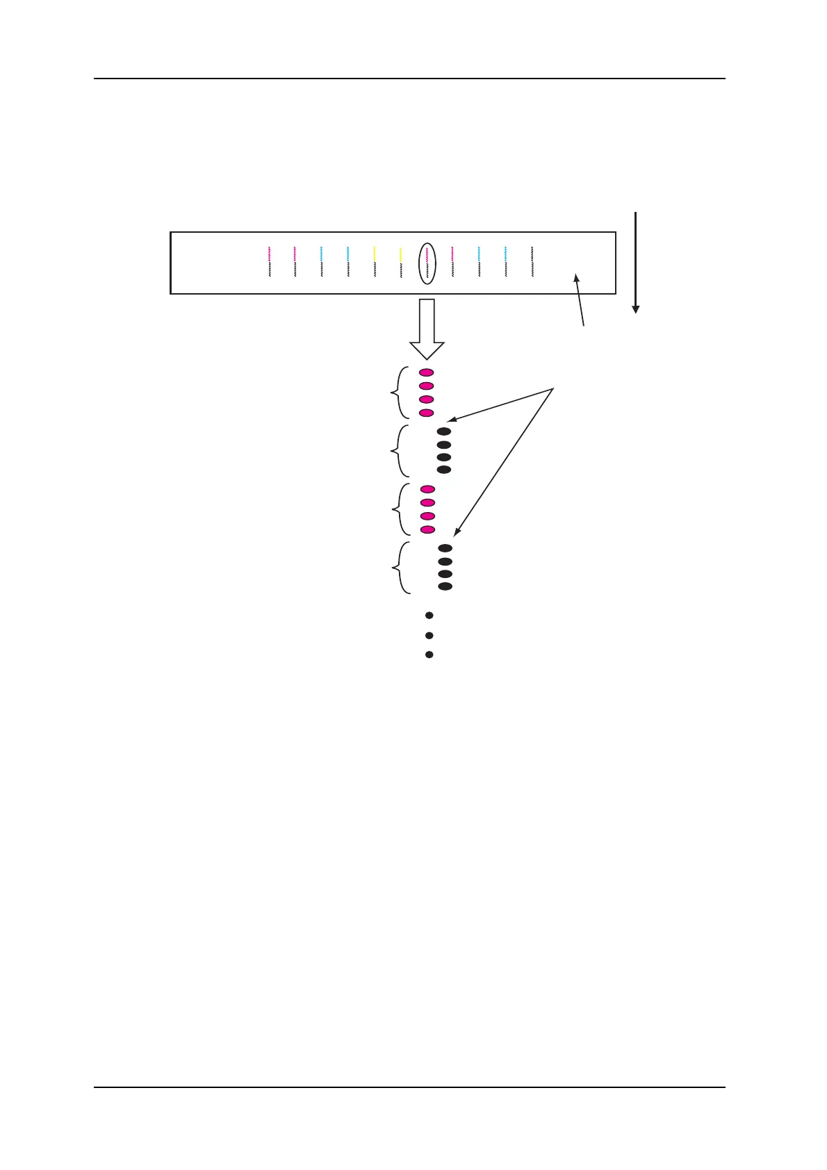 3. Check the printed CW adjustment check patterns for the following points.