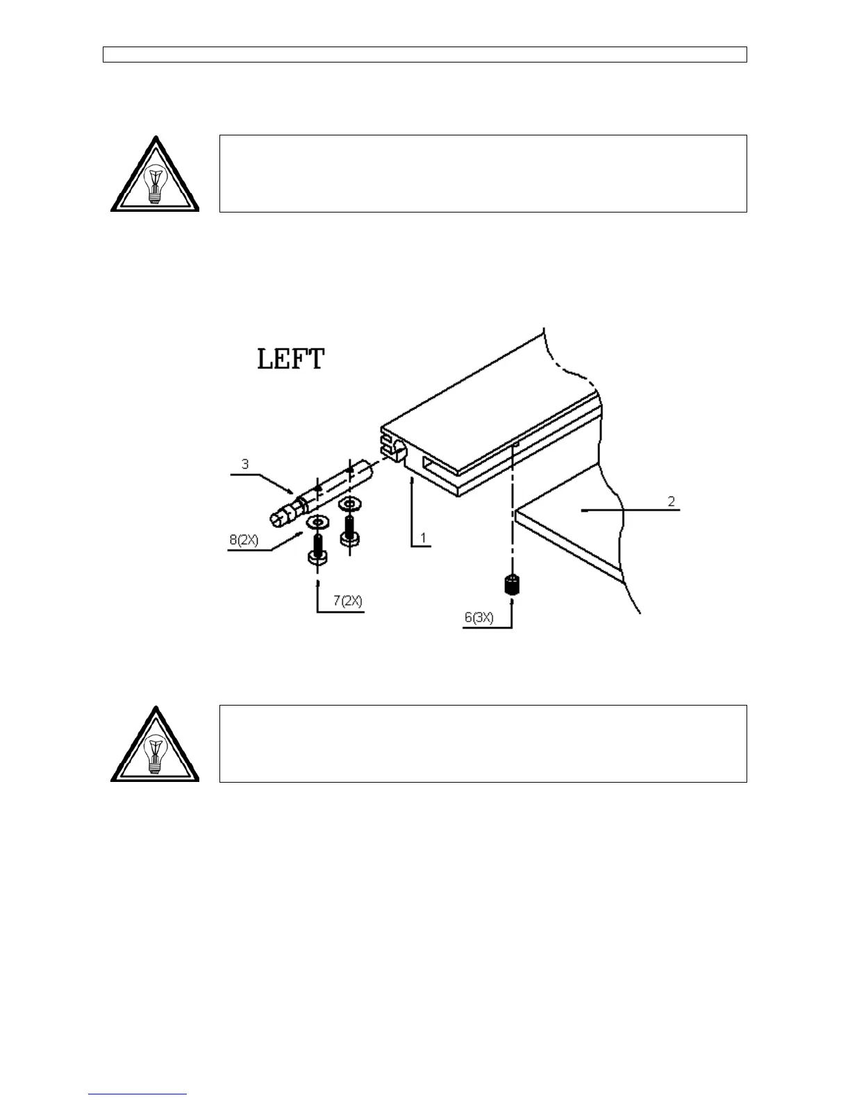 Step 2 : On the left side of the cover unscrew screws 7 (2) one (1) turn and slide the shaft 3 inside the rail