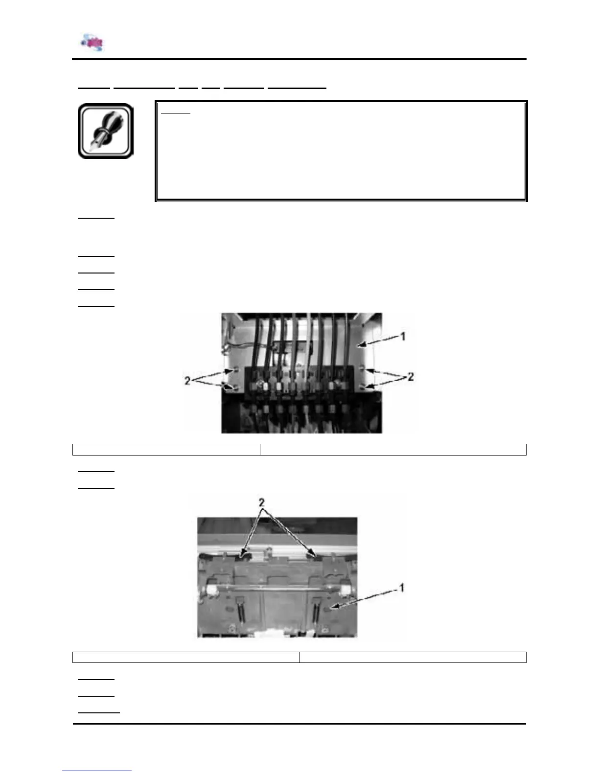 1 = CR board installation board 2 = Screws (M3x8) fixing the CR board installation board