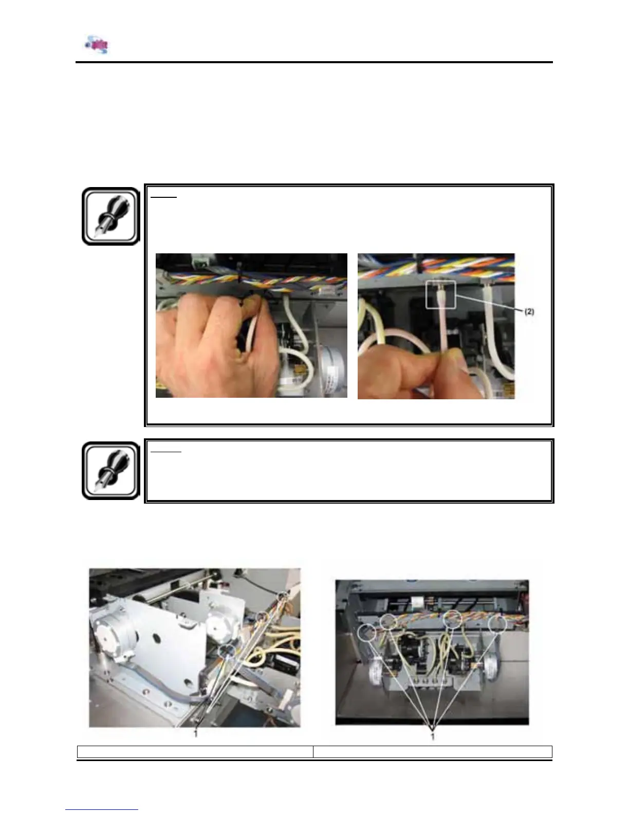 ¾ There is some remaining ink in the tubes. Be careful that the ink is not spilled from the