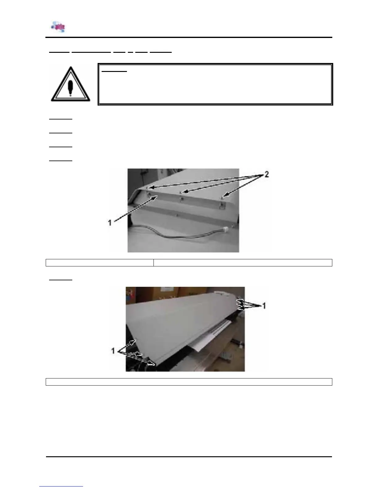Removing the Y rail cover, should be performed by at least two persons.