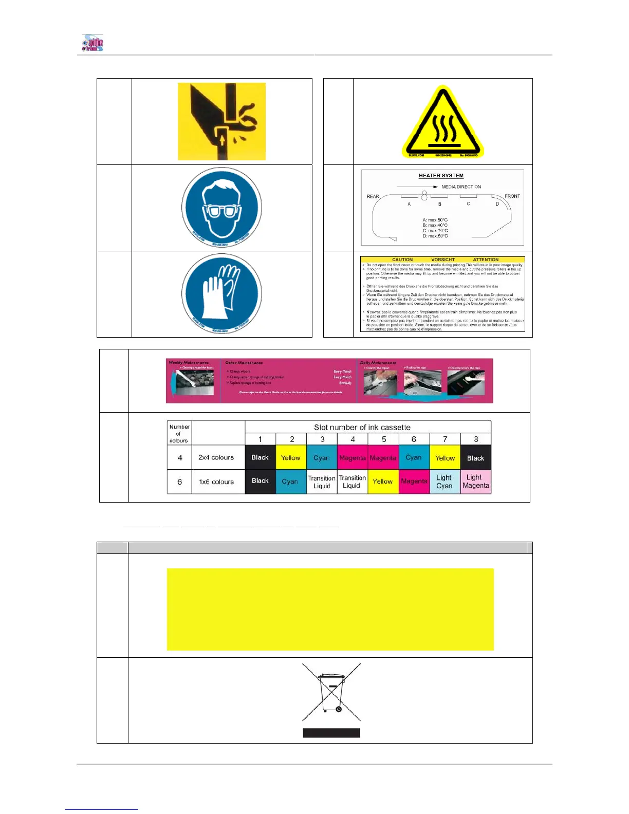 and types of warning labels on back part.