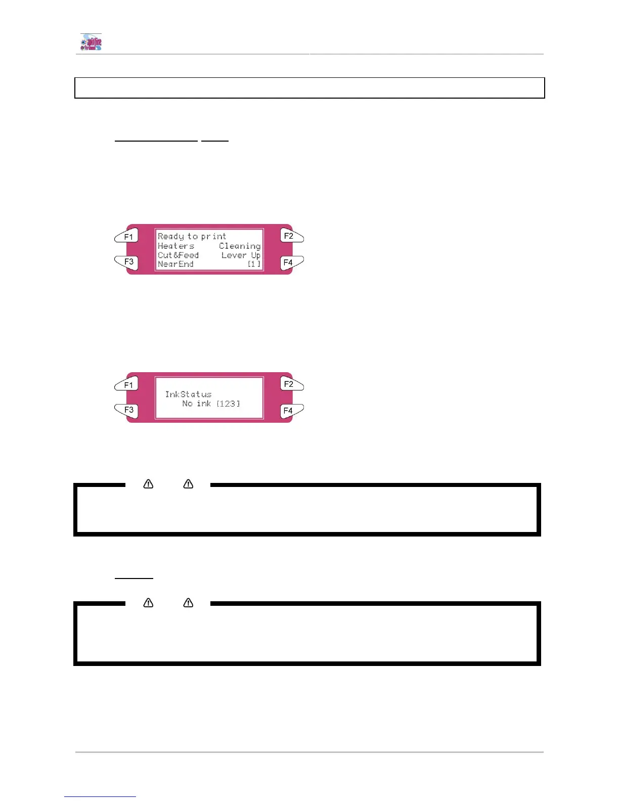 printouts may become faint and the printer will not be able to detect the end of ink.