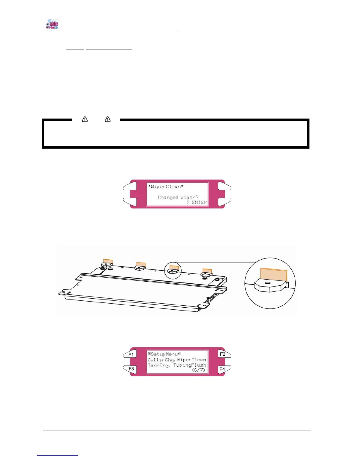 Step 1 : Power ON the printer and go to the “WiperClean-Menu”. This will cause the unlocking of the
