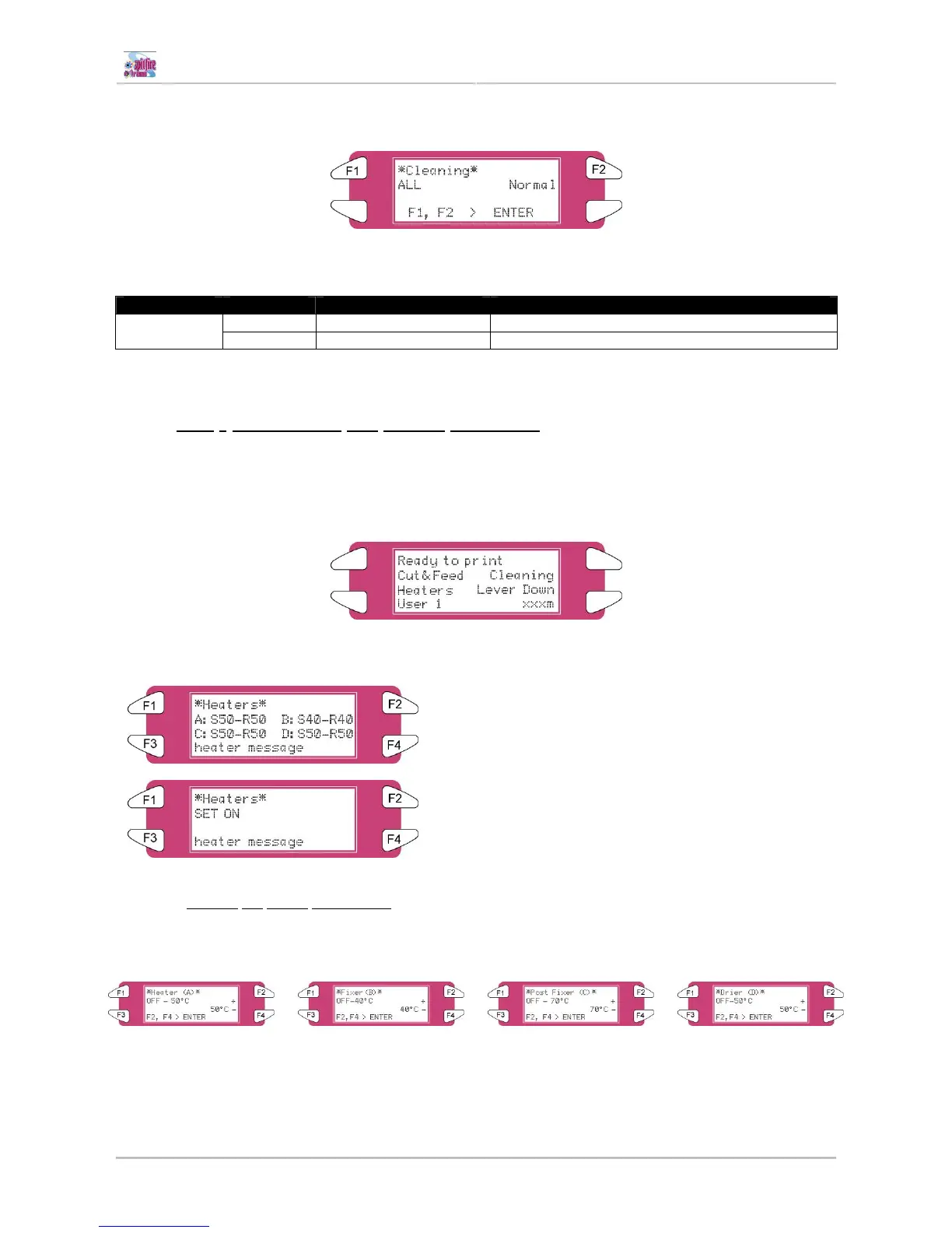 To change the temperature of one of the heaters, press the [F1-F4] key on the operation panel. The display