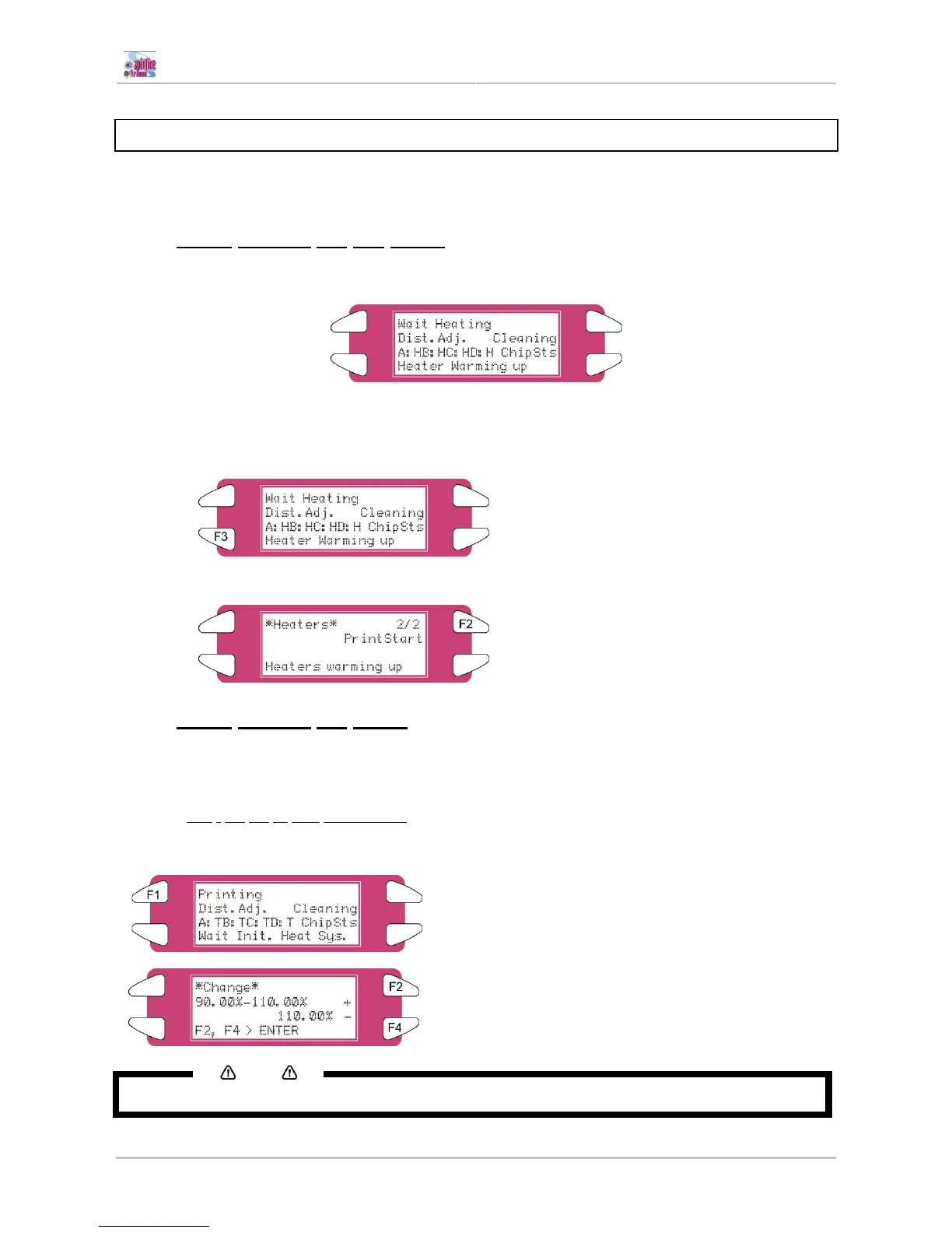 When the heaters are not reached their target temperature, the following screen will be displayed.