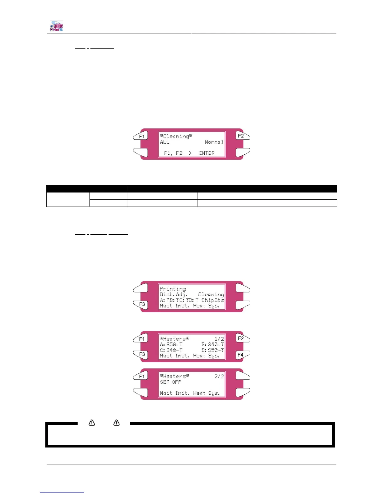 F1 ALL, Head 1 – Head 2 Clean ALL heads or head couple one or two Cut & Feed