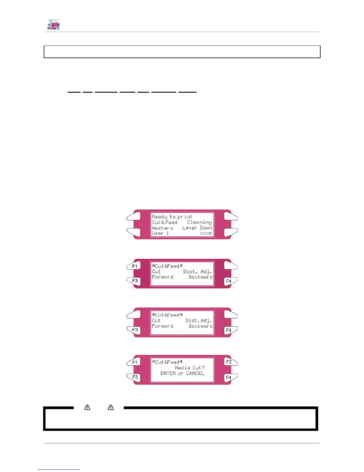 I) Press the [ENTER]-key to cut the media or the [CANCEL]-key to abort this operation.