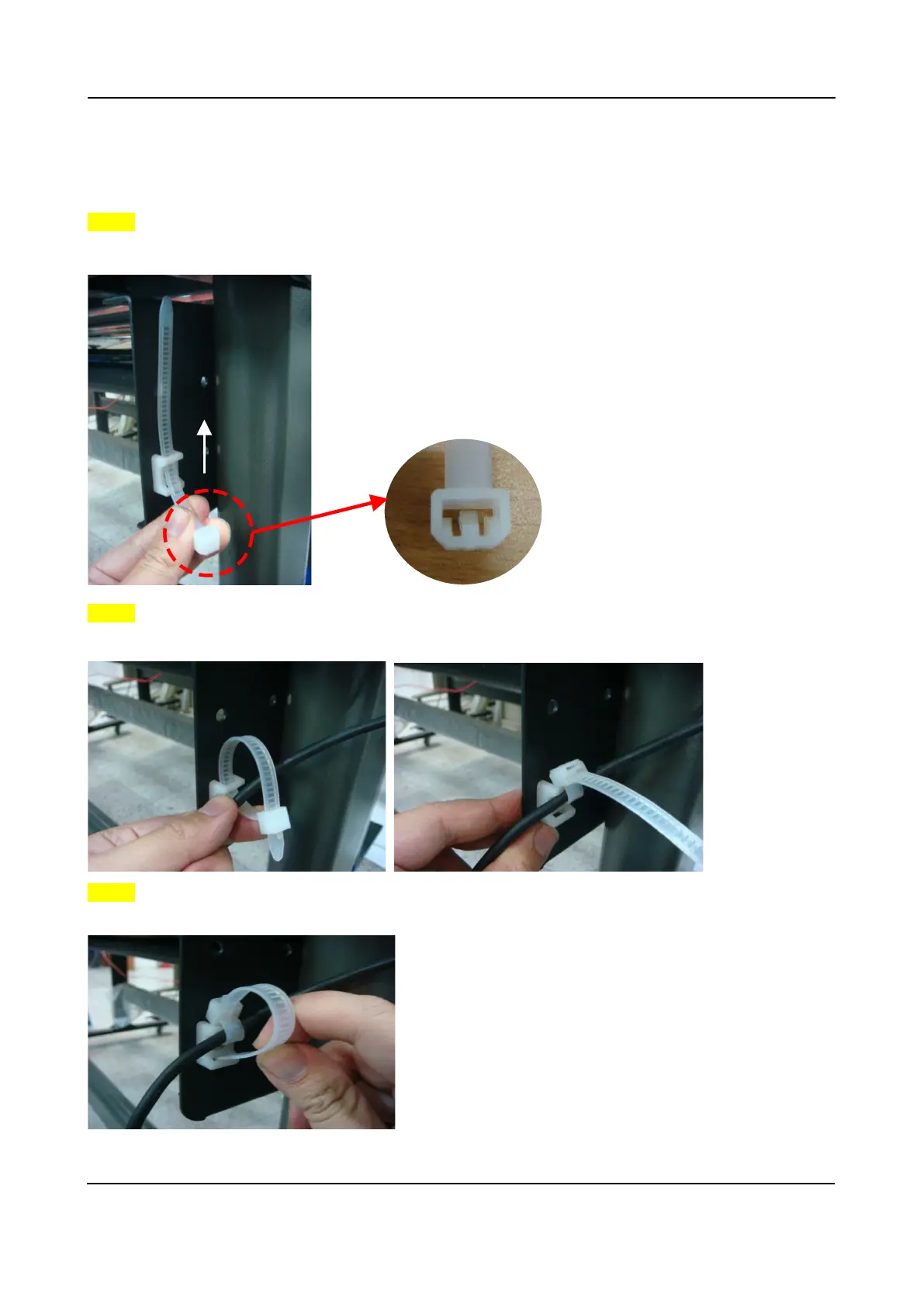 Insert the cable tie into the upper hole of cable saddle from bottom to top.
