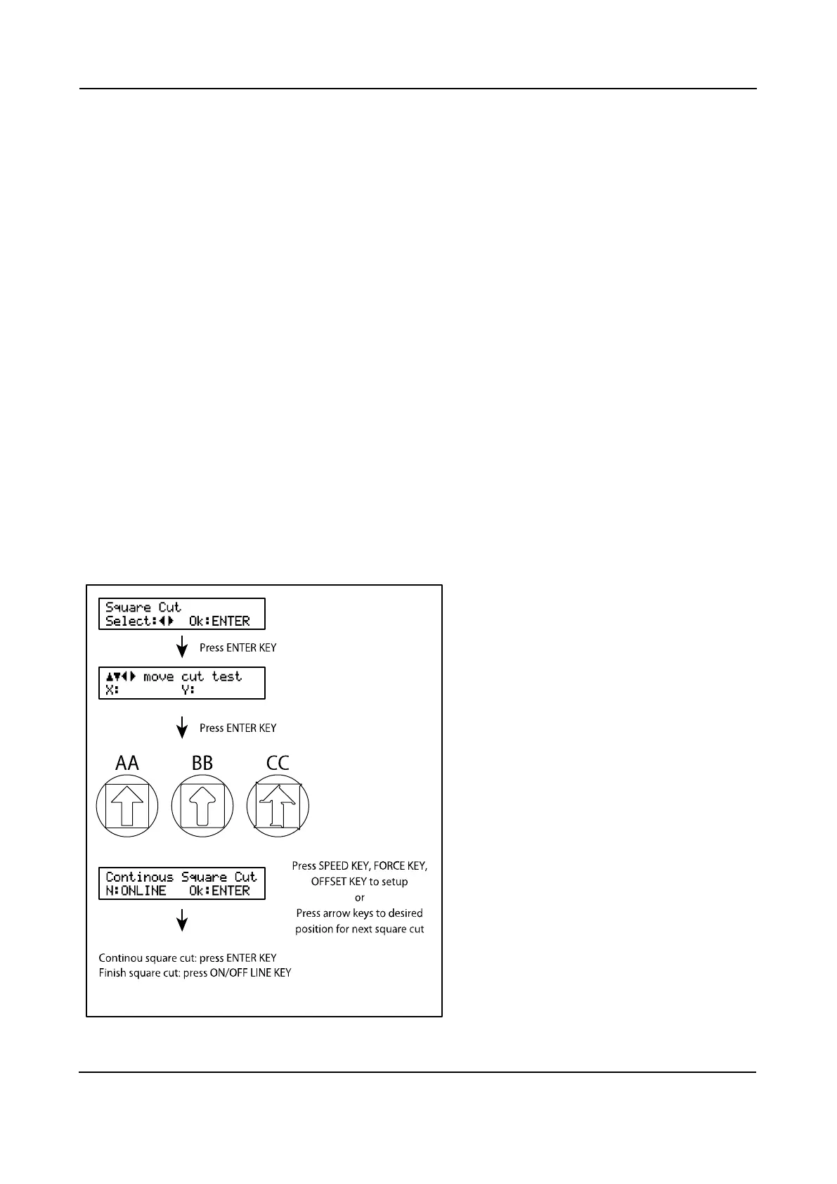 After sizing the media, press [CUT TEST] button to select the “square cut”, and press [ENTER] key to