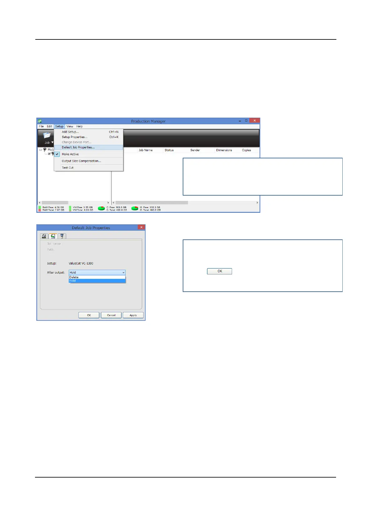 The Production Manager window can hold a job following the figure below. This is how to leave cutting