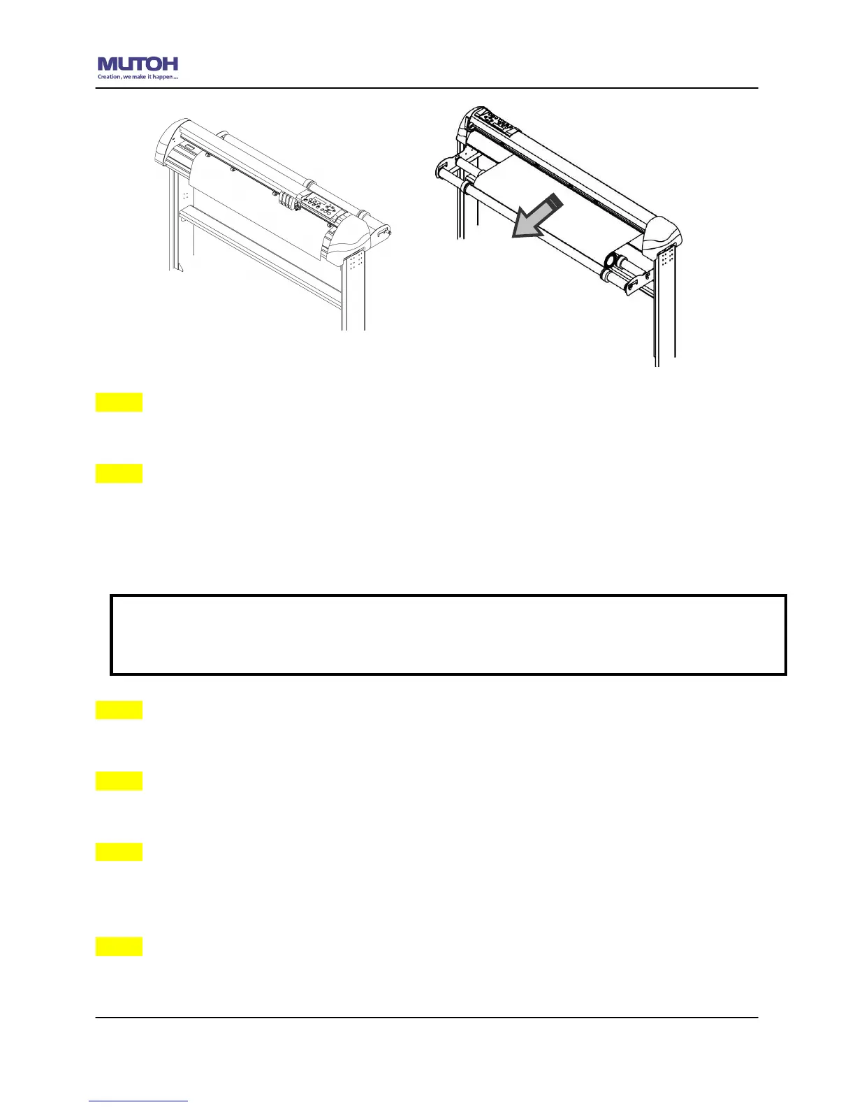 Turn on the power switch, the tool carriage will sizing the media automatically.