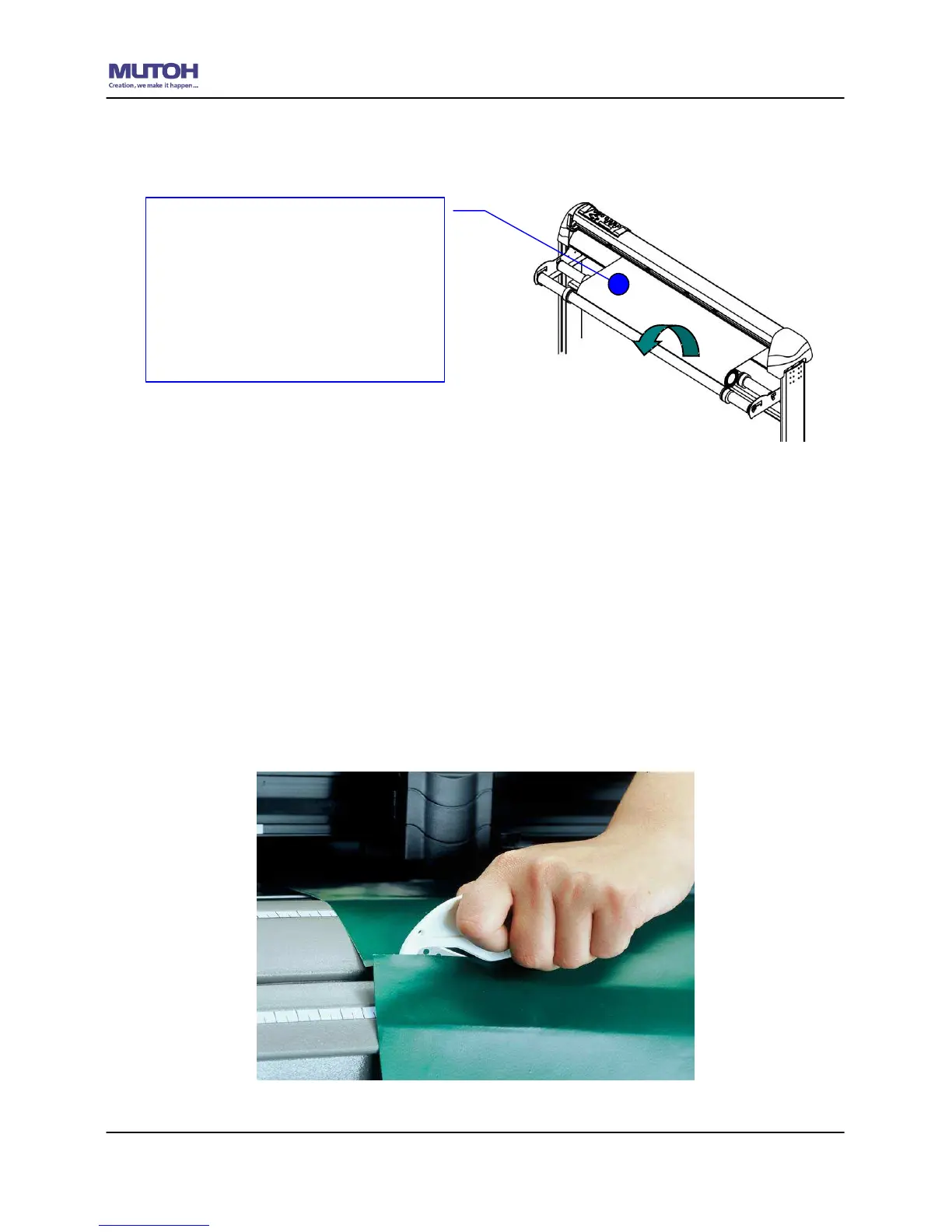 Then turn the roll downward to make an equal tension across the media