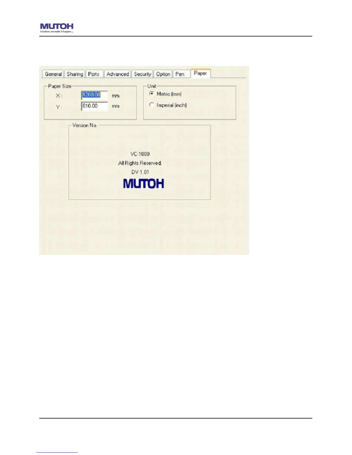 Unit (Paper Page) [DEFAULT SETTING: Metric (mm)]
