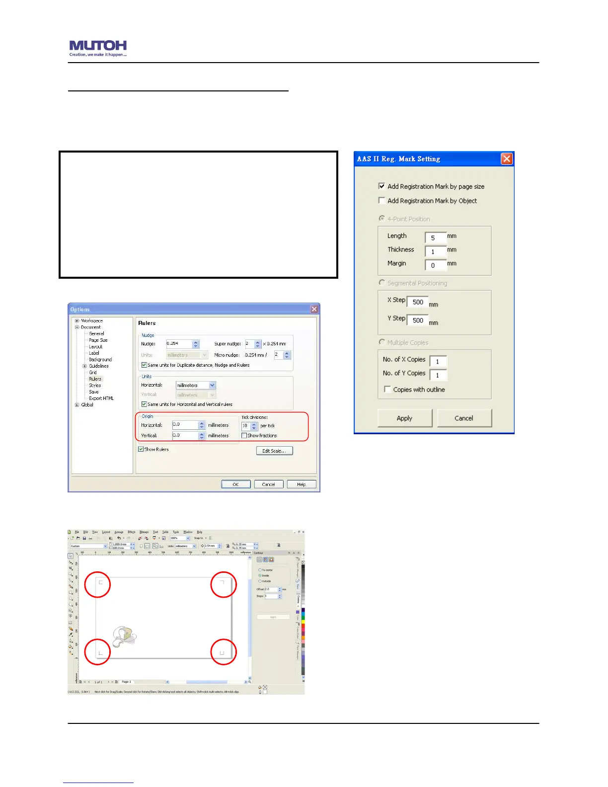 The system will create the 4 marks on the 4 corners of the page as shown in the picture below