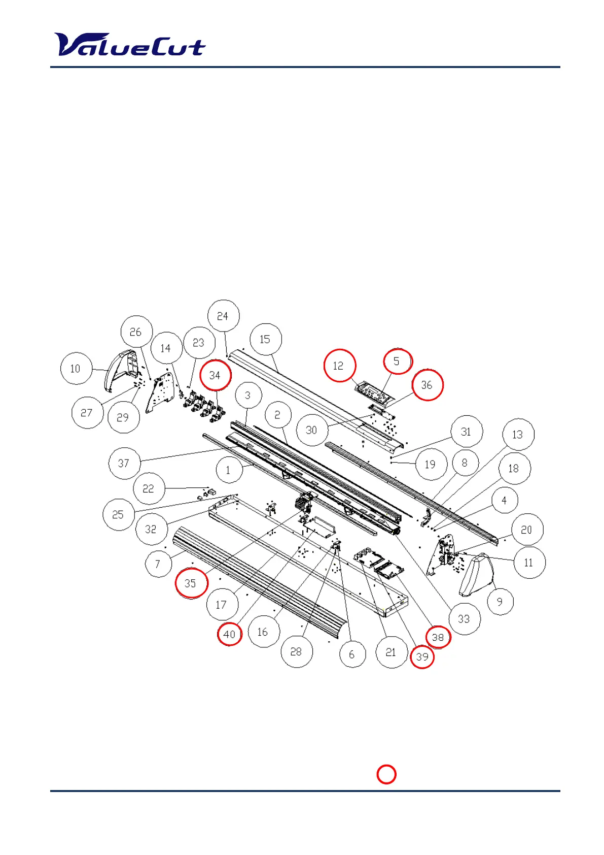 The recommended service parts are circled in red. Please refer to the parts list at the end of this manual