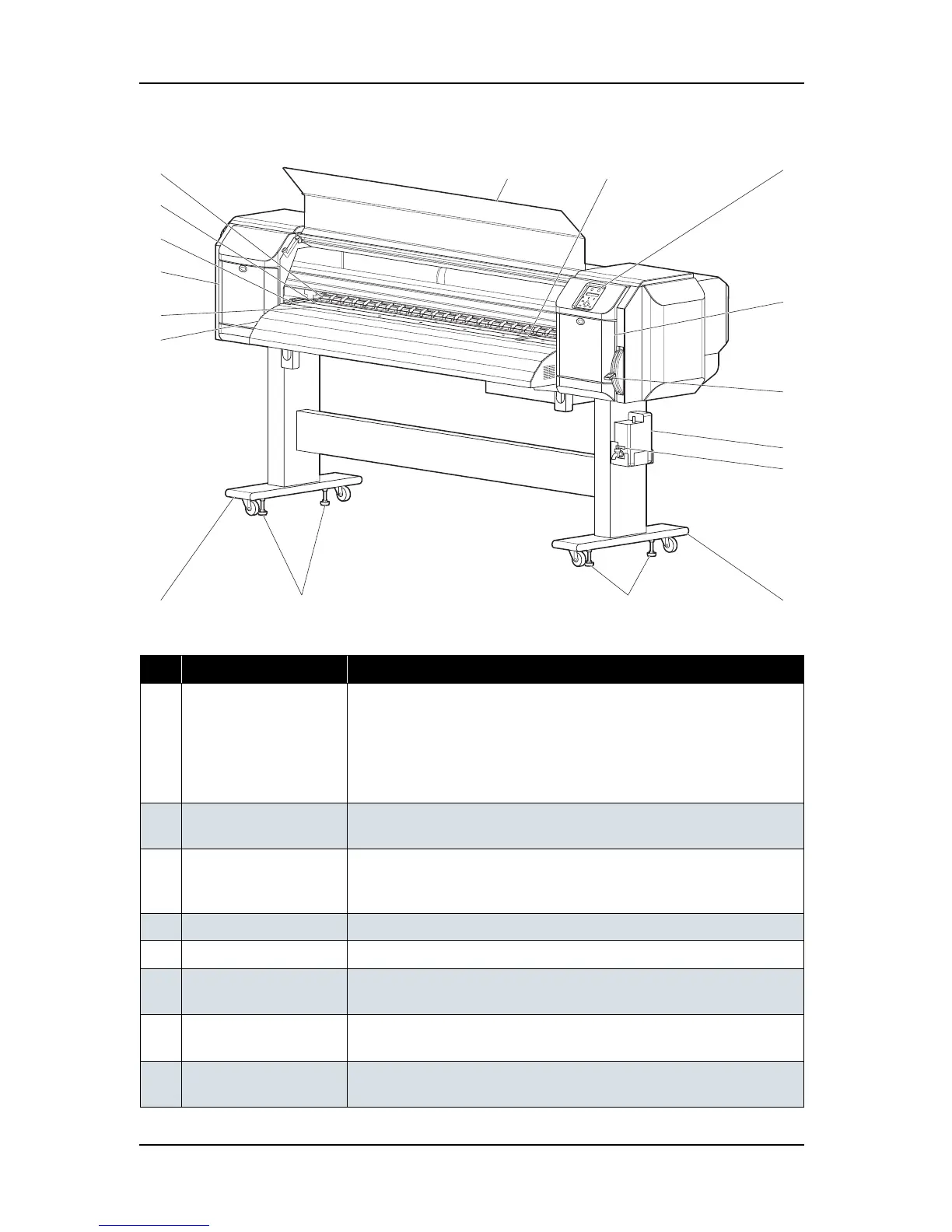 3 Front cover Keeps the operator safe from the drive parts of the plotter while it is