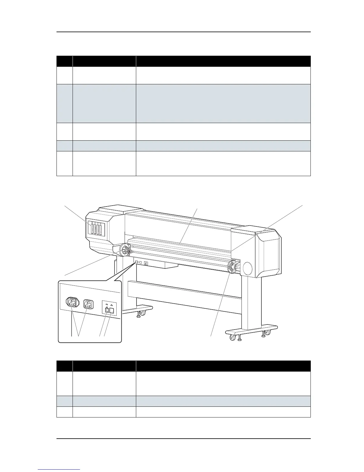 10 Maintenance cover Used to protect users from the mechanical parts inside the plotter in the