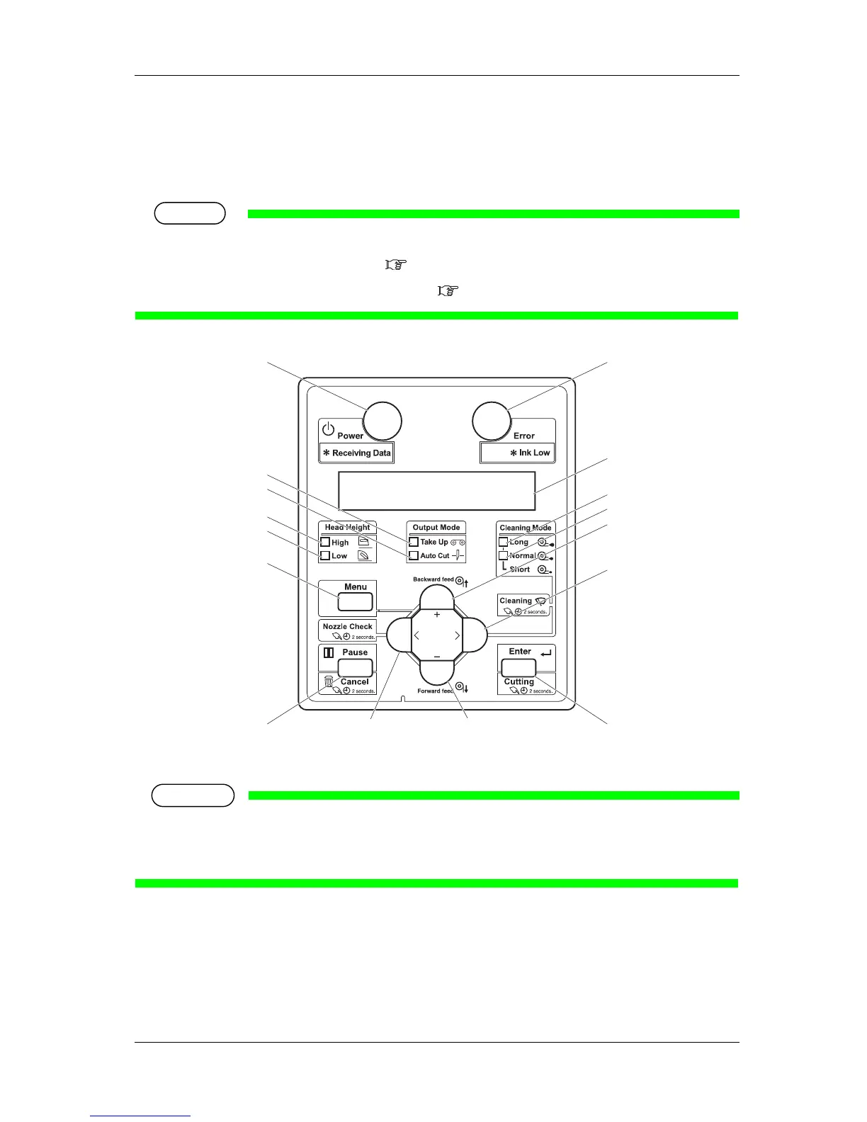 Used to set the operating conditions, to display the status of the printer, and to set various functions.