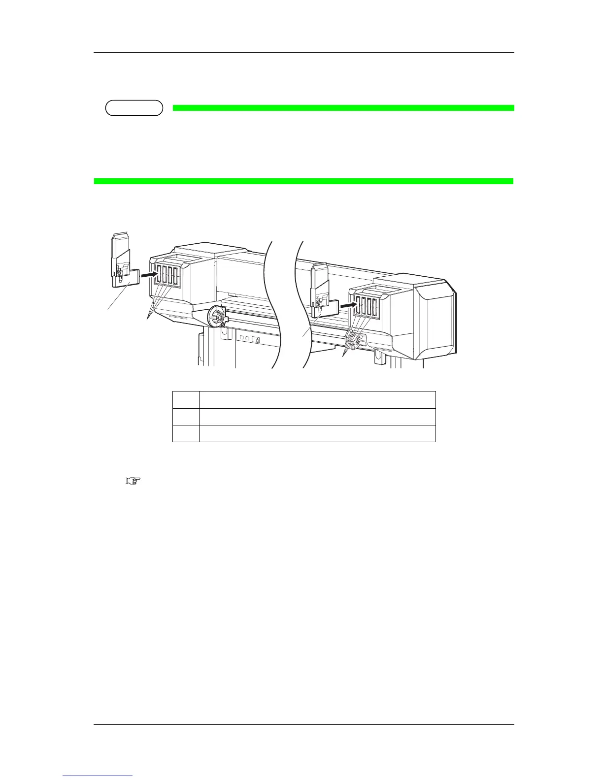 • Insert High-capacity ink pack adapters all the way in Ink cartridge slots.