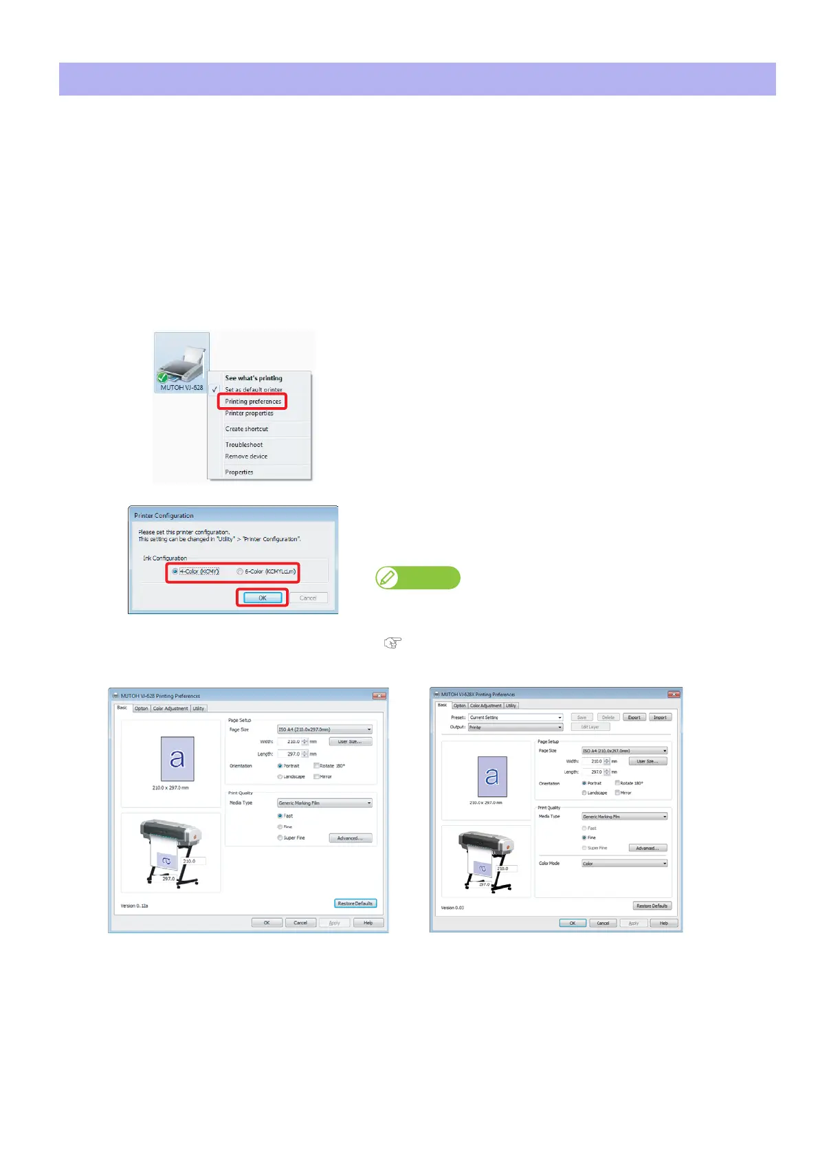 Right click the “MUTOH VJ-628” icon and click [Printing preferences].