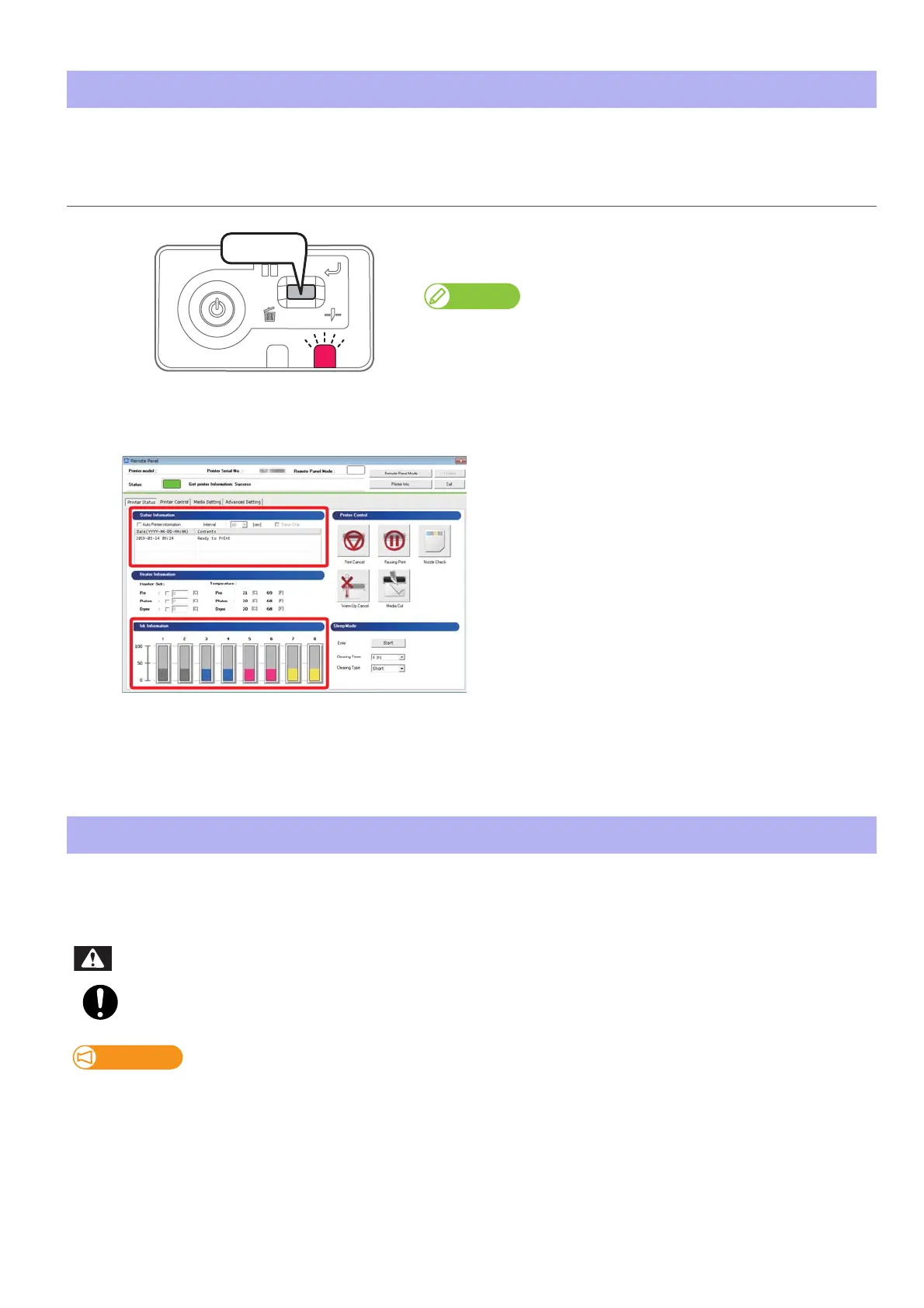 When the ink level becomes low, the error LED on the operation panel flashes with beep sounds.