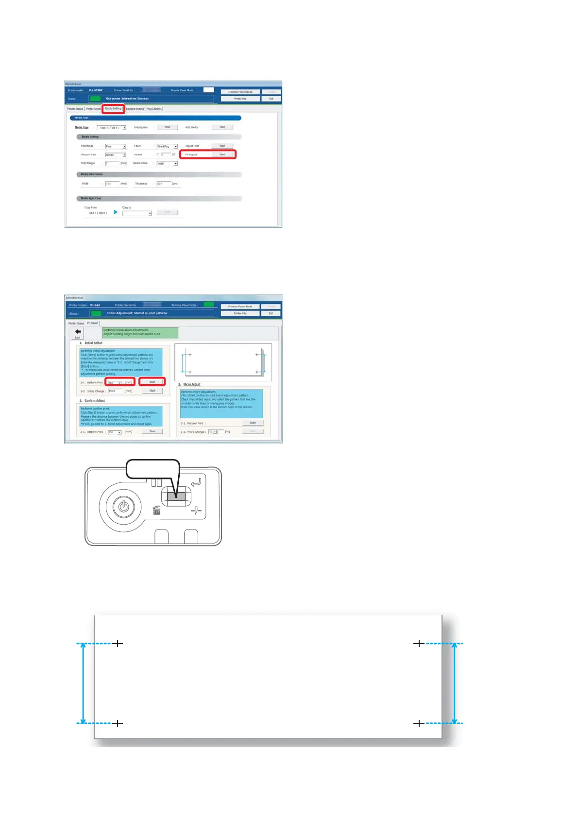 Select the length ([mm]) of [1-1 Pattern Print] in [1. Initial Adjust], and click [Start].