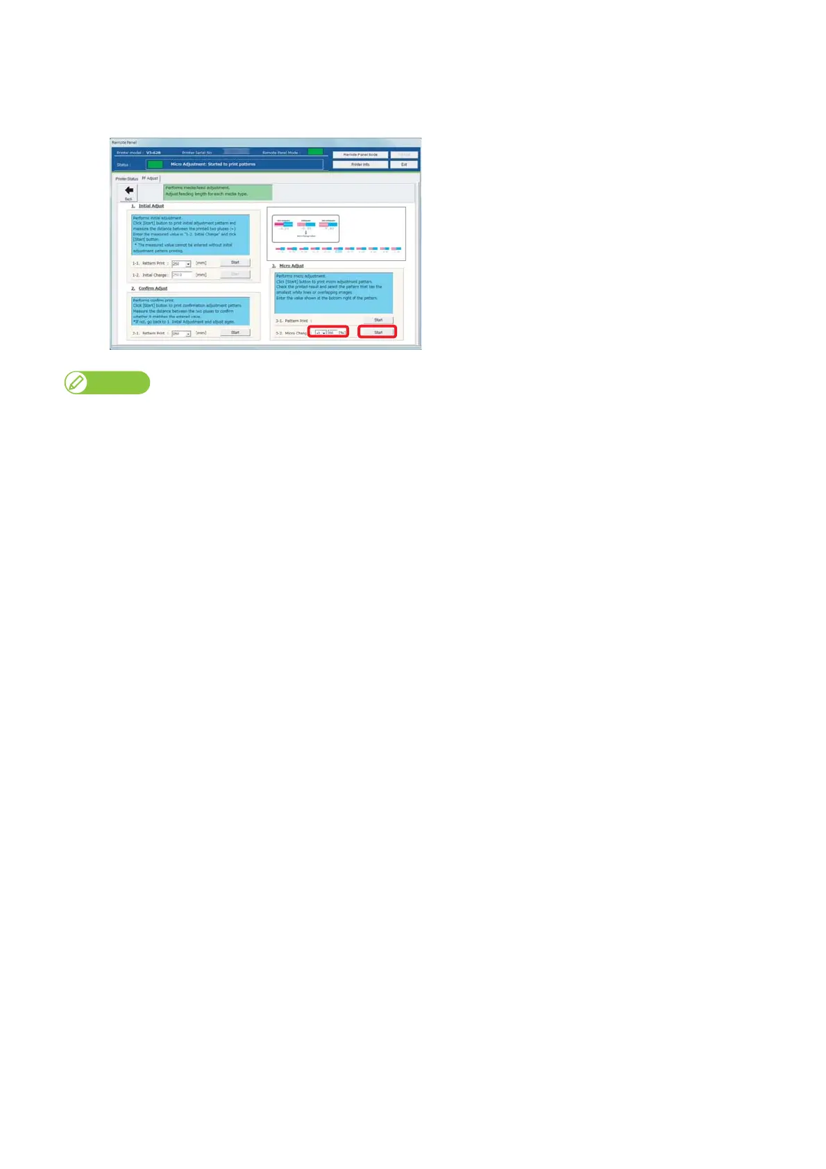 Enter the checked value in Step 2 to [3-2. Micro Change], and click [Start].