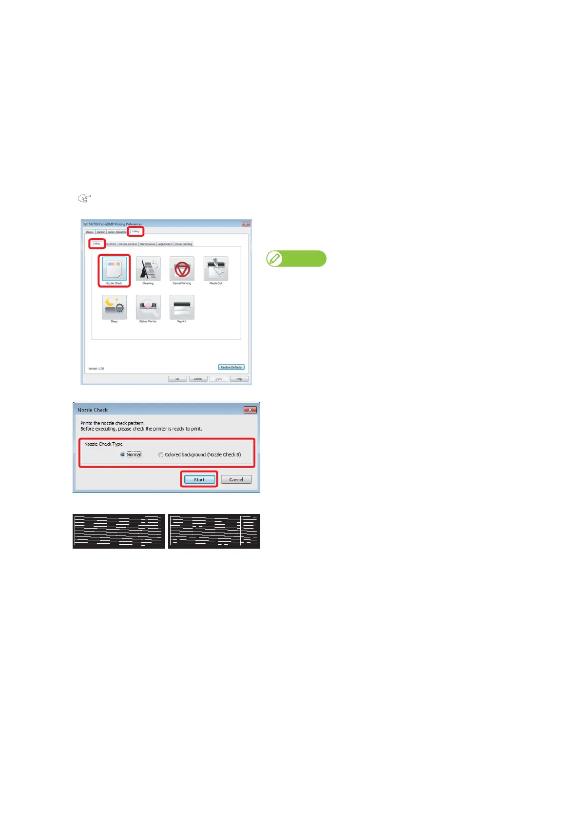 Click [Nozzle Check] from the [Utility] tab on the [Utility] tab.