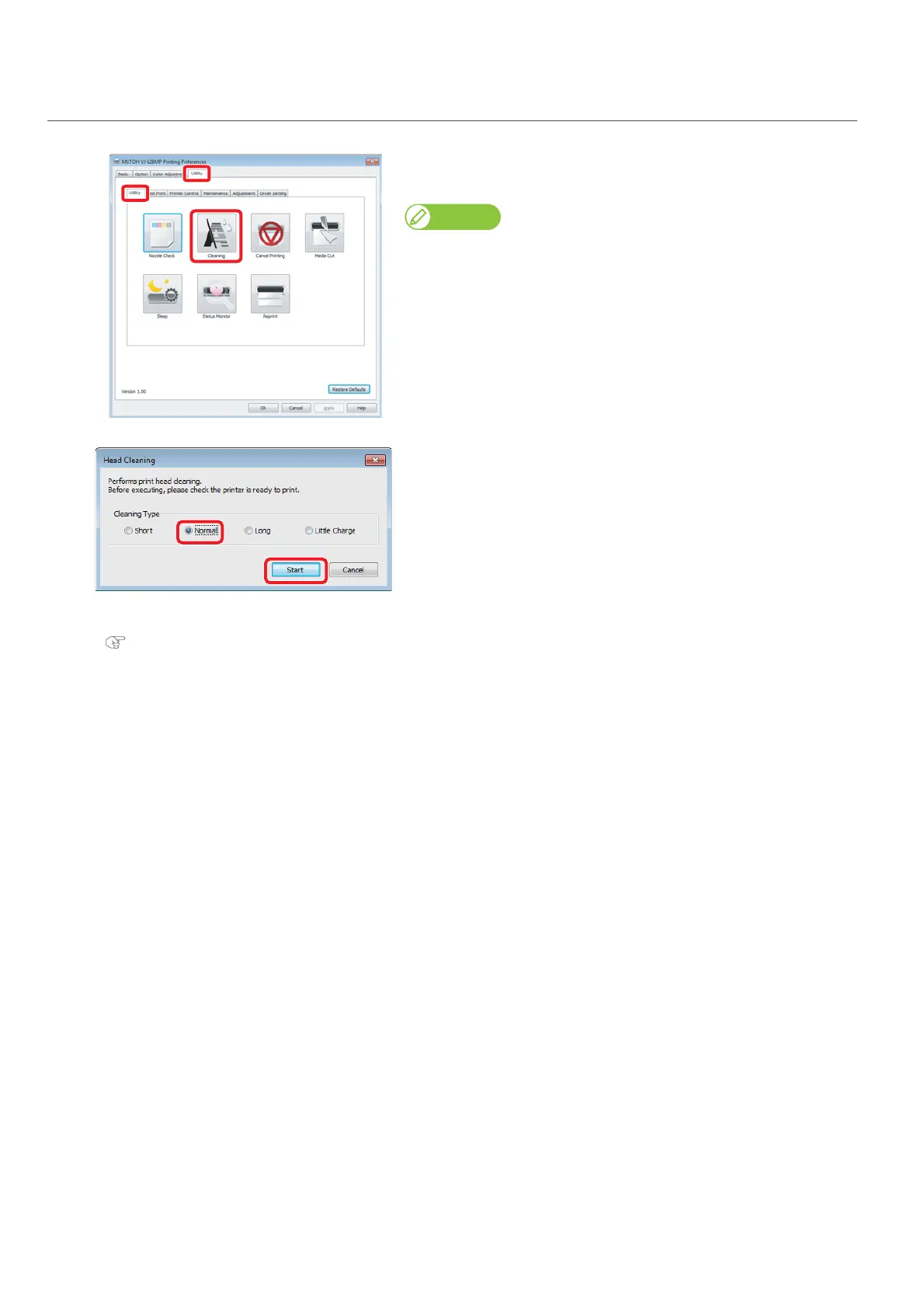 Click [Cleaning] in the [Utility] tab under the [Utility] tab.