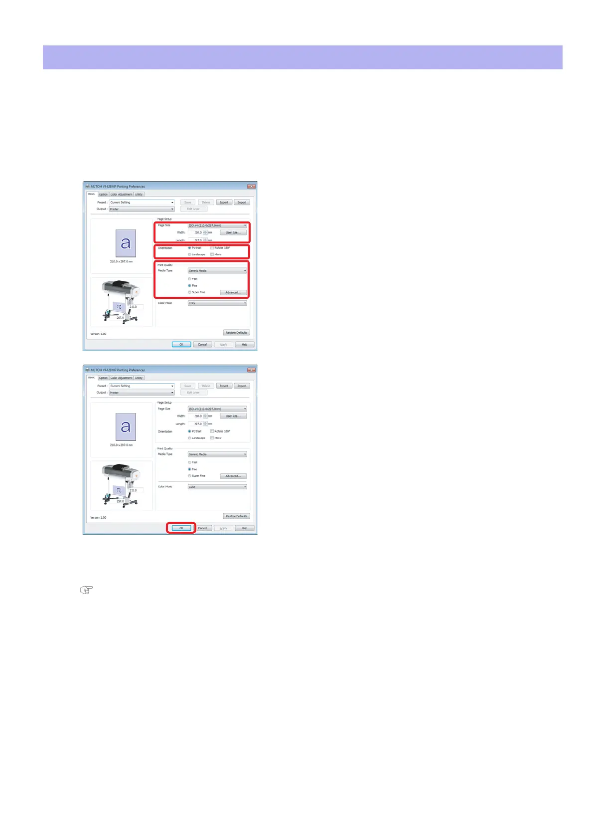 • Set [Paper Size], [Orientation] and [Print Quality].