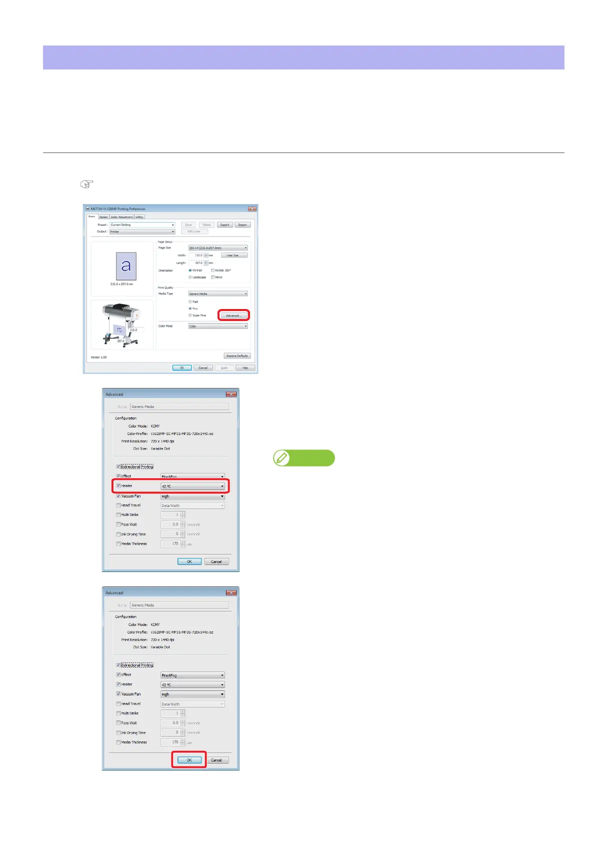 heater setting is changed matching the thickness or material of media, better results can be obtained.