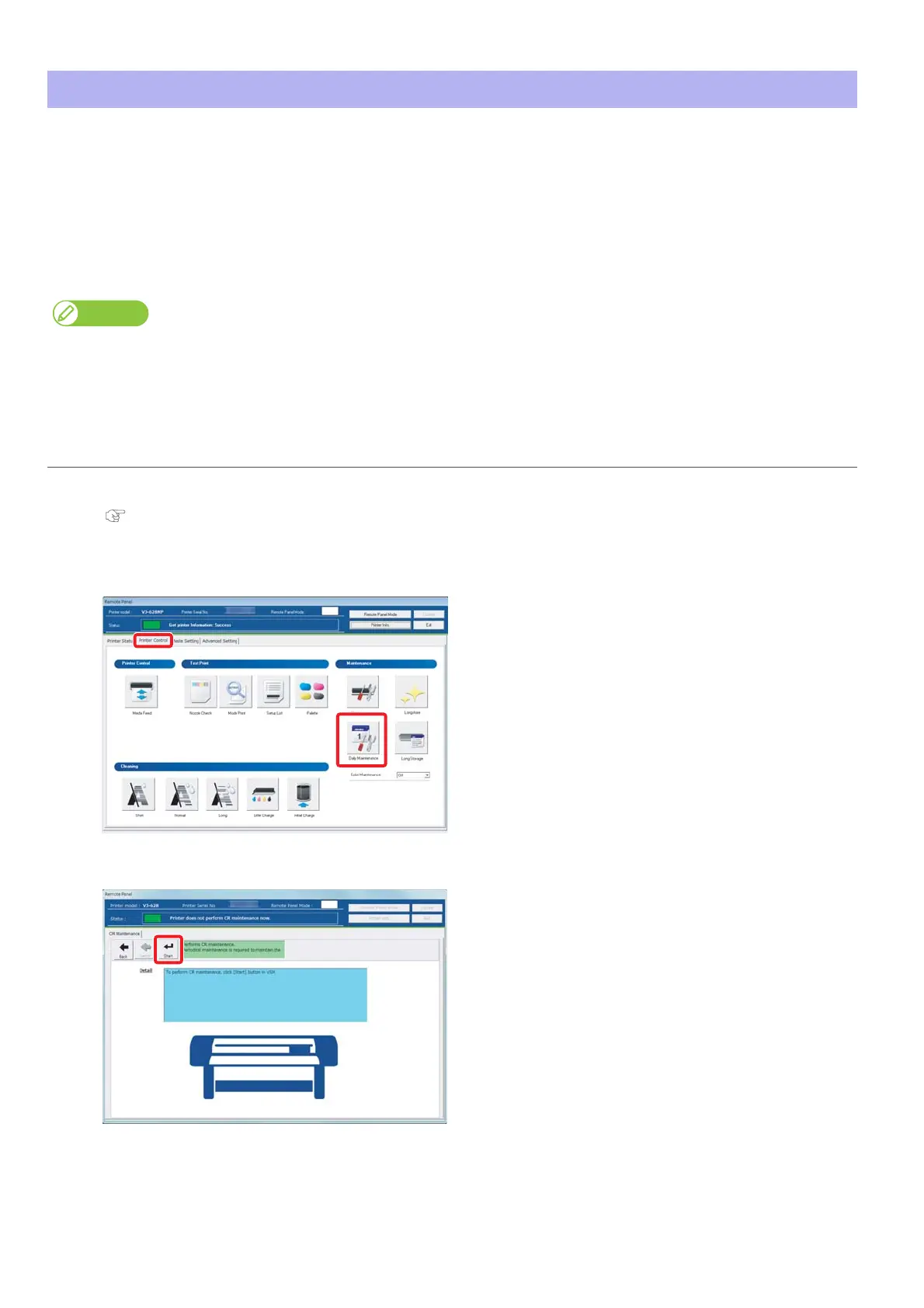 • If you perform printing all day without entering to sleep mode and you need to perform daily maintenance.