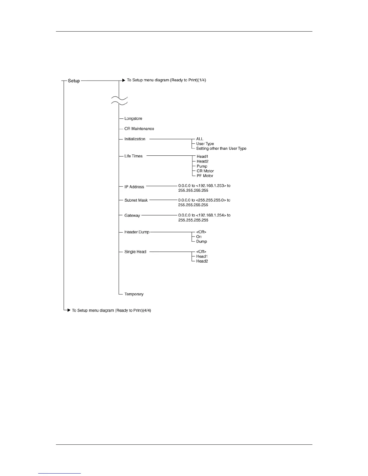 MUTOH VJ-1638 - 9 Setup Menu Diagram (3;4); Network, Header Dump, and Single Head Settings