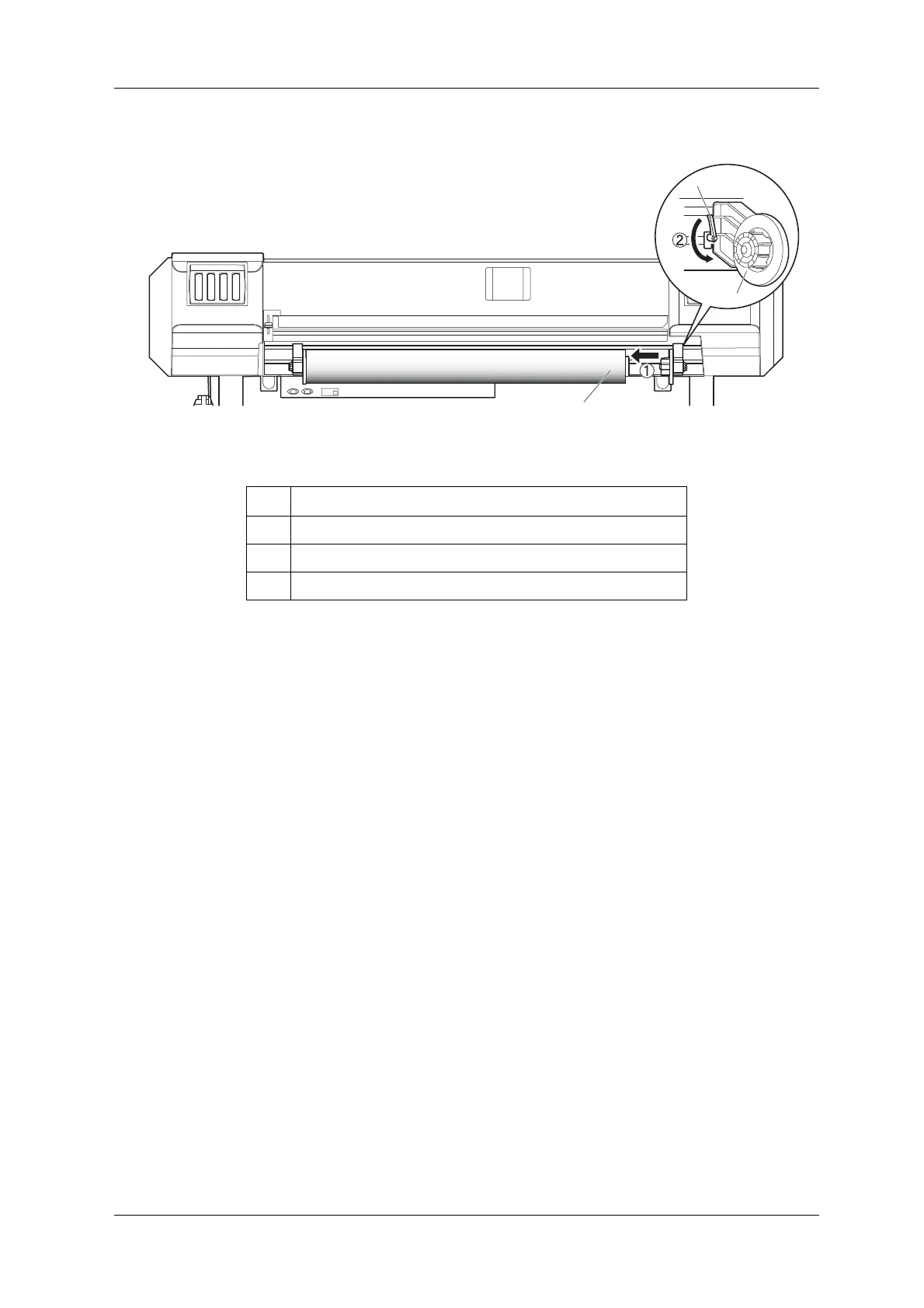 4. Attach Roll media holder (Right) to the roll media() and tighten Fixing lever().