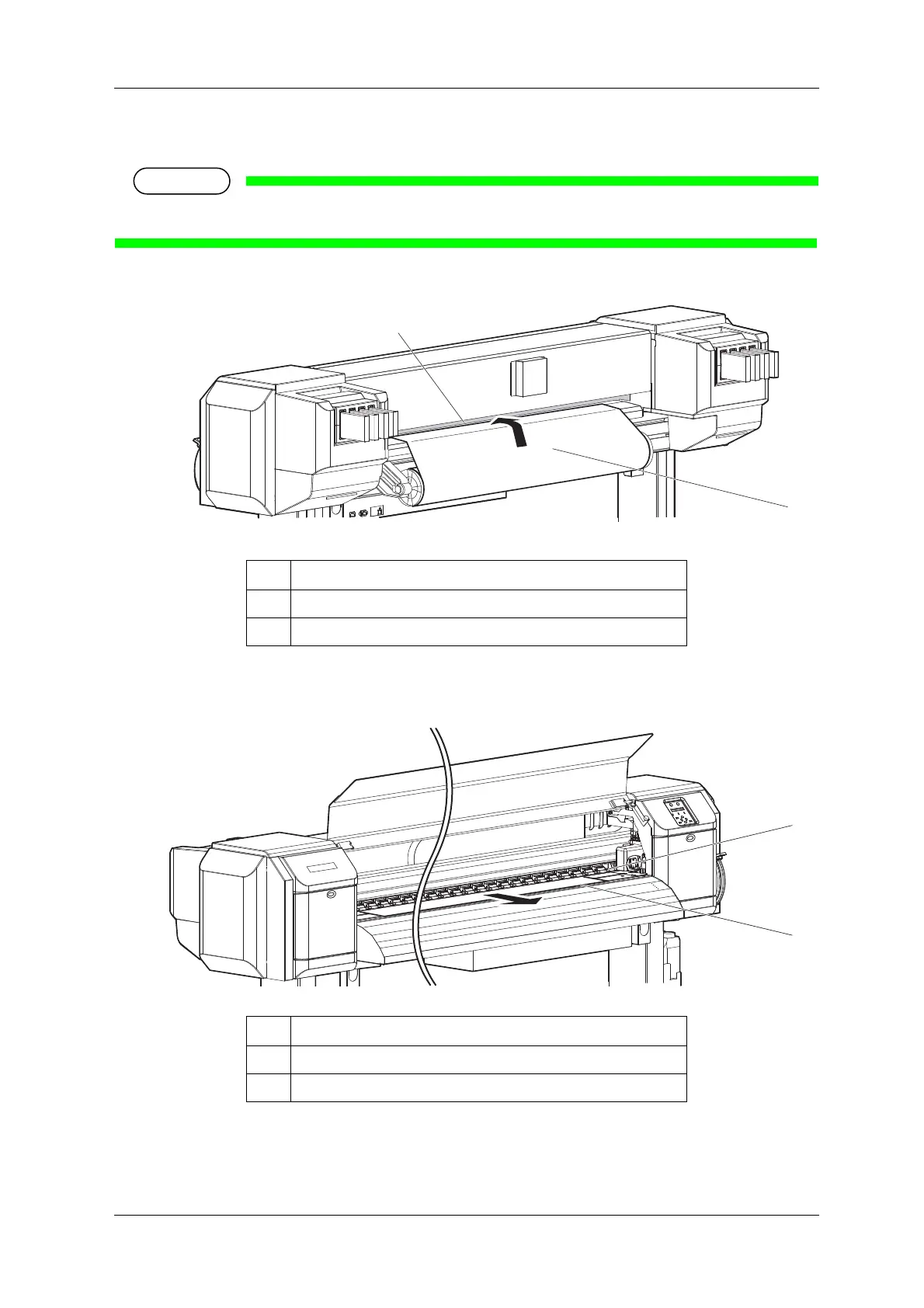 5. Pull the roll media out about 1 m from the front Media feed slot which is located inside of Front