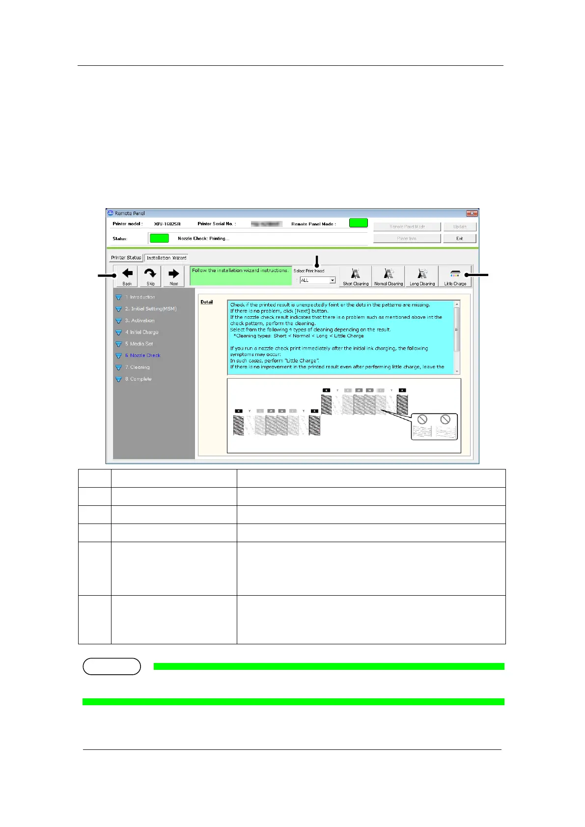 After sending the command to print the nozzle check patterns, each cleaning buttons