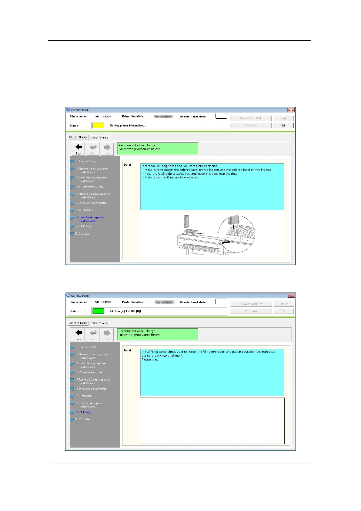 fluid.When the insertion is completed, performs the initial ink charge.