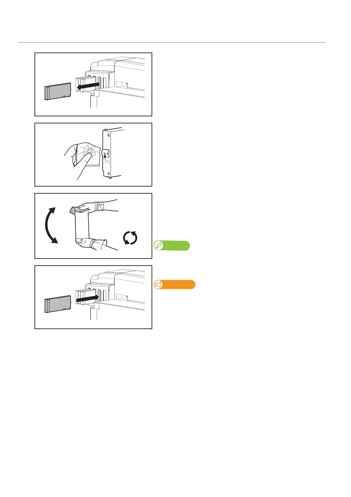 • Place the lint-free cloth over the ink plug of the cartridge, turn the plug up